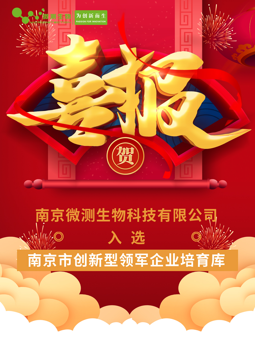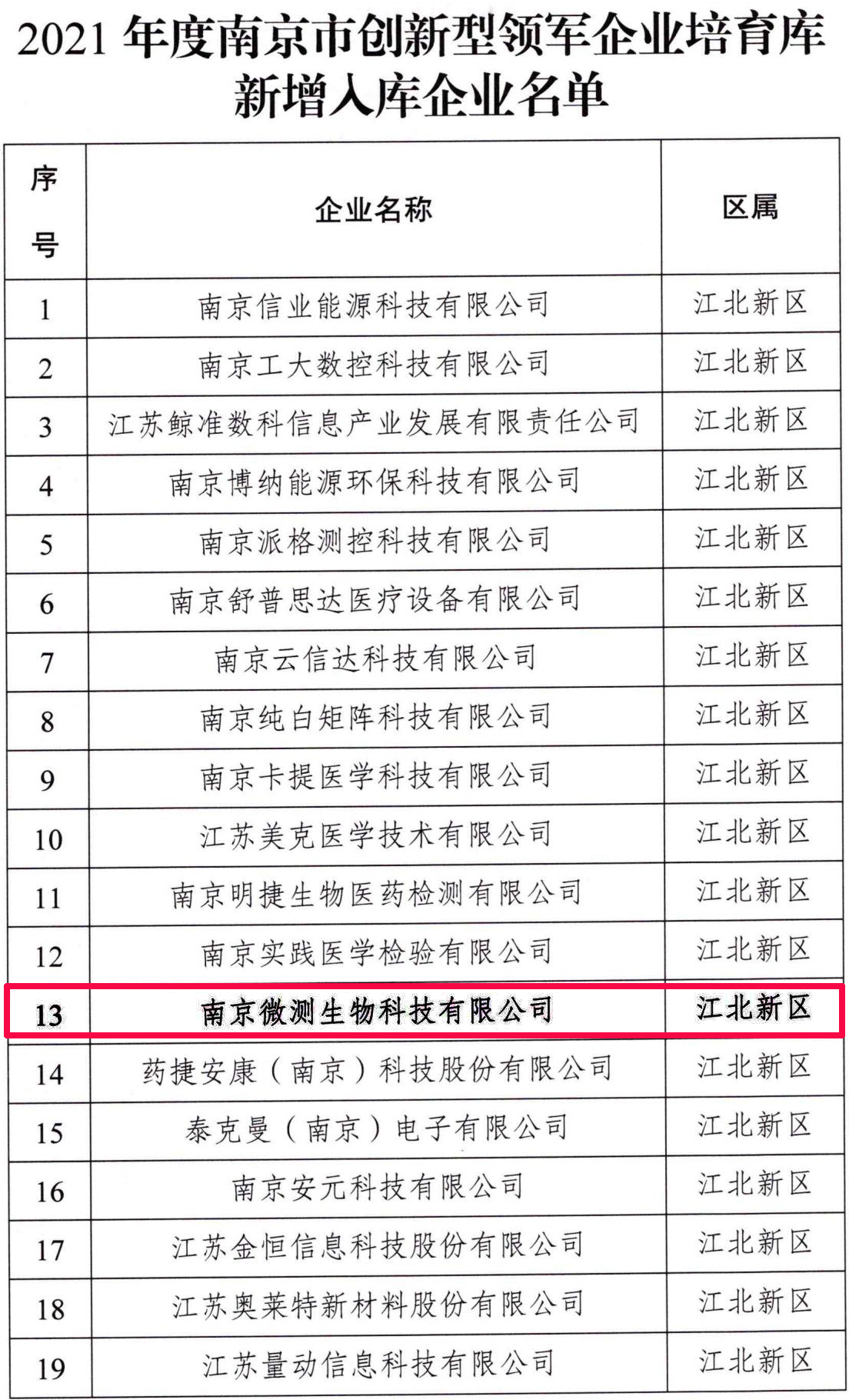 南京微測(cè)生物科技有限公司成功入選2021年度南京市創(chuàng)新型領(lǐng)軍企業(yè)培育庫(kù)入庫(kù)企業(yè)榜單。